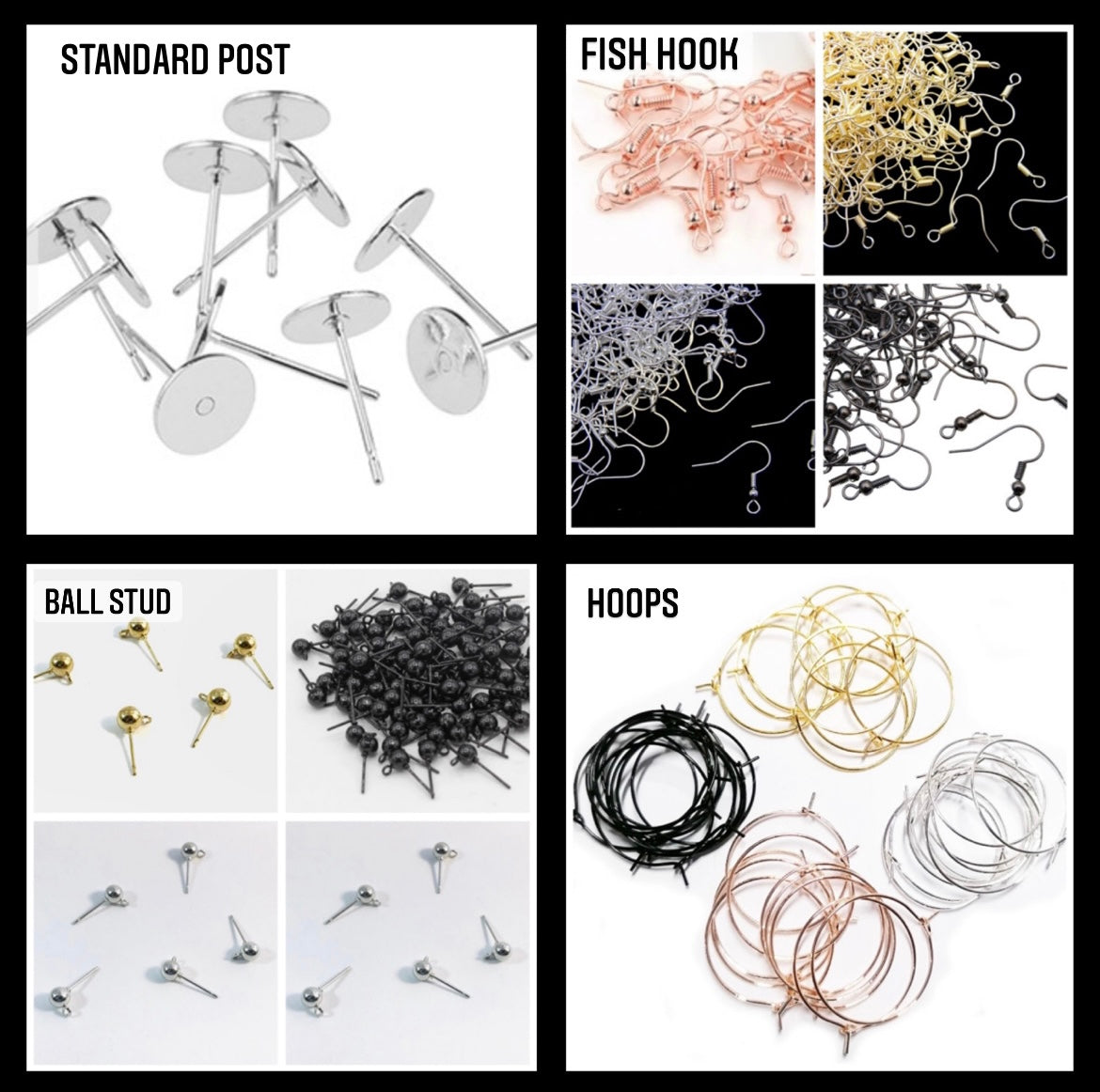 All Earrings come with stainless steel posts or hoops as standard. Any charms attached are brass.